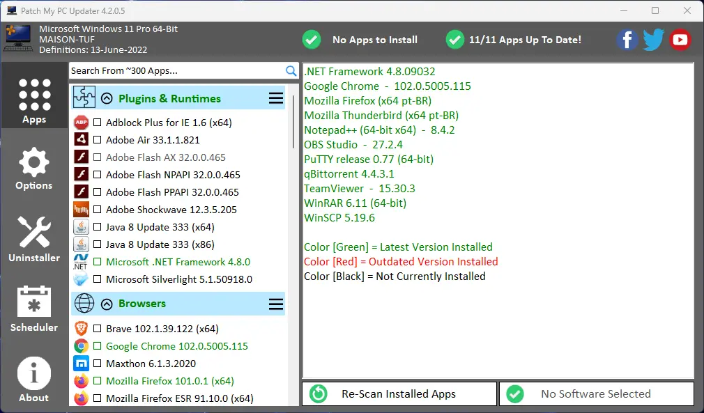 Quando você abrir o Patch My PC Updater, ele irá escanear seu sistema para programas desatualizados.