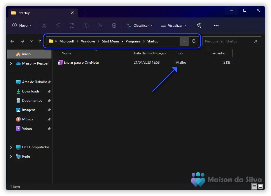Para abrir a pasta de Inicialização, existem duas maneiras: