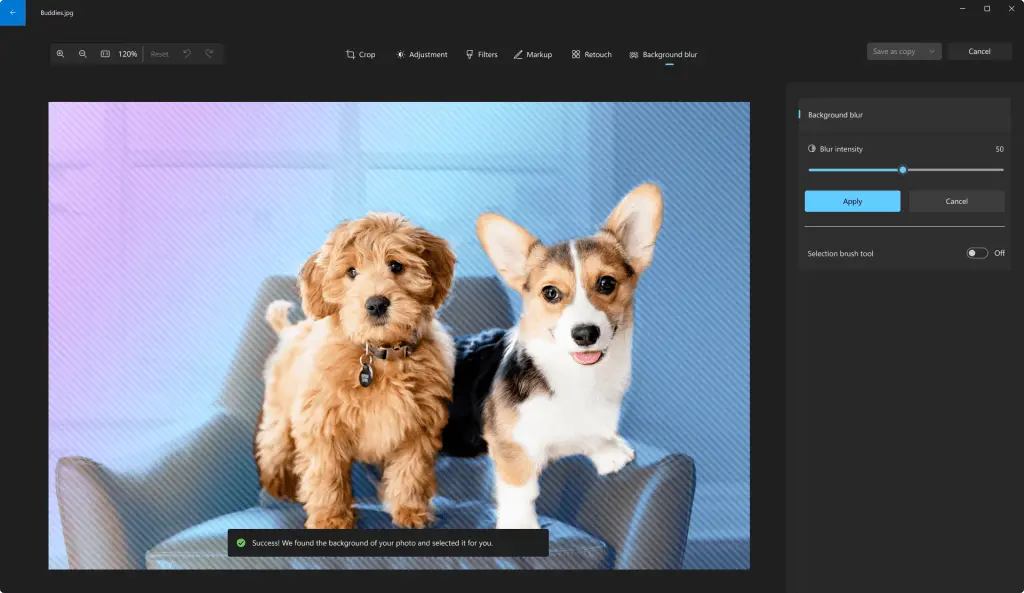 Faça com que o assunto da sua foto se destaque abrindo uma foto no modo de edição e selecionando a nova opção Desfoque de fundo. O aplicativo Fotos localiza automaticamente o plano de fundo na foto e, com um único clique, destaca instantaneamente o assunto e desfoca o plano de fundo. Você também pode personalizar o efeito ajustando a Intensidade do desfoque ou usando a Ferramenta Pincel para modificar as áreas que estão sendo borradas.