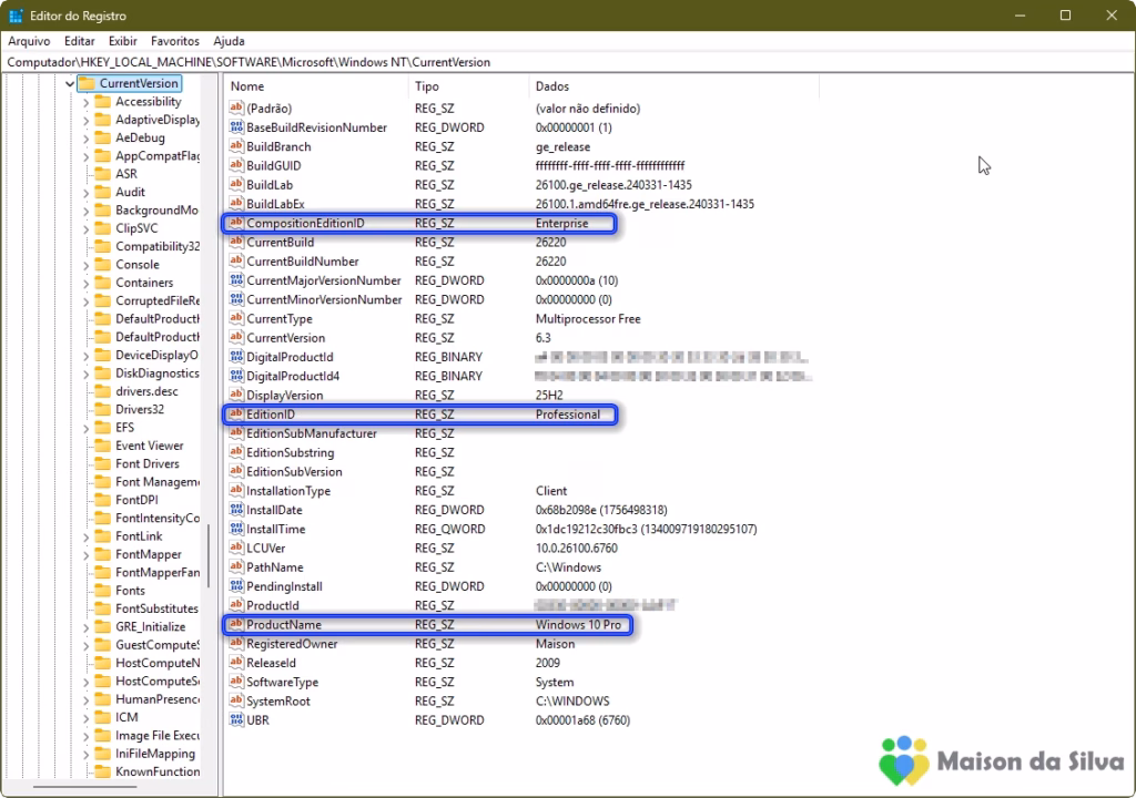 HKEY_LOCAL_MACHINE\SOFTWARE\Microsoft\Windows NT\CurrentVersion